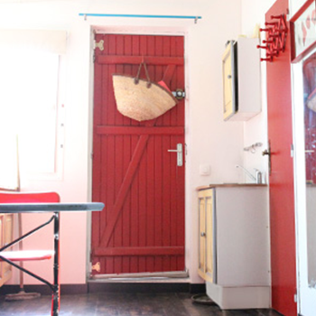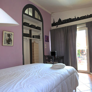 De suite à gauche après le portail, cette chambre possède son petit extérieur avec sa porte indépendante et son autre porte sur les communs ; salon piano et la cuisine.