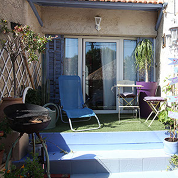 Telle la cabane au fond du jardin, il est plus indépendant que les autres logements, il comprend un canapé transformable en lit double de 160 cm de large, un coin cuisine, une douche, un wc privé, ainsi qu'une table et un barbecue en extérieur.